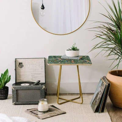 Square Ninola Design Prairie Flowers Countryside Red Side Table White/Gold – Deny Designs