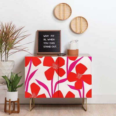 Maritza Lisa Red And Pink Floral Pattern Credenza – Deny Designs